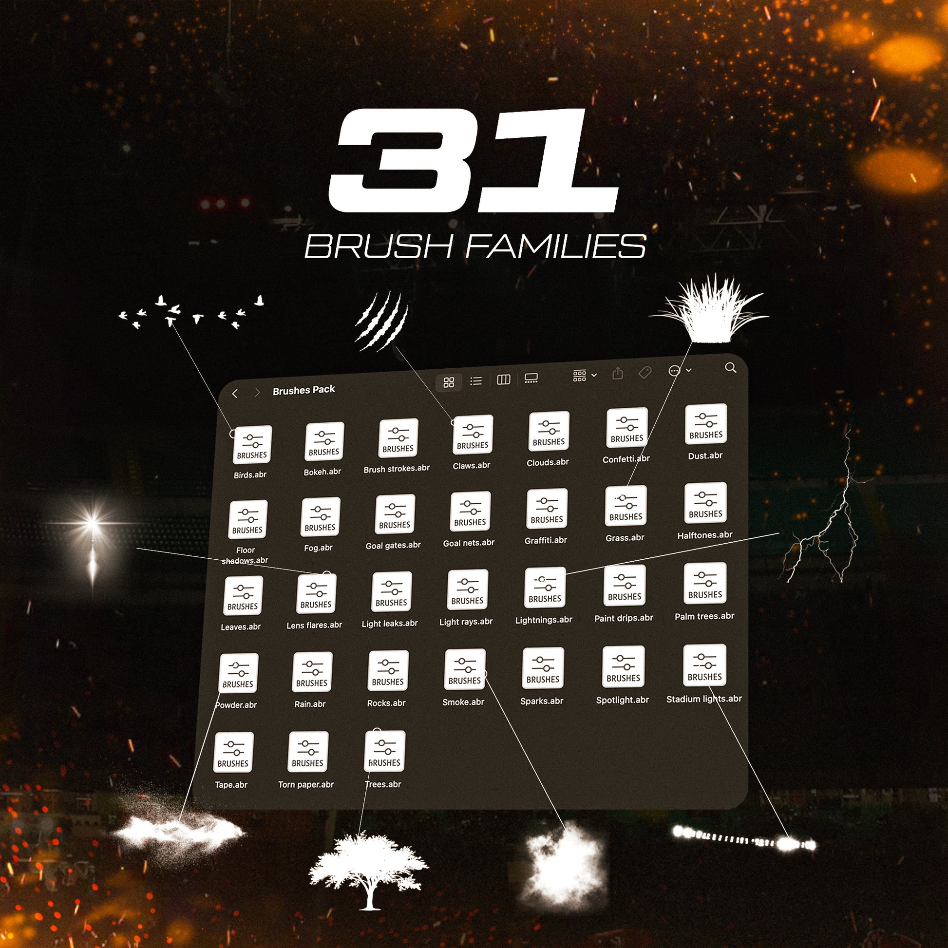 ✅ 4000+ sports design elements: Overlays, textures, brushes, icons, fonts, mockups - all in one place!